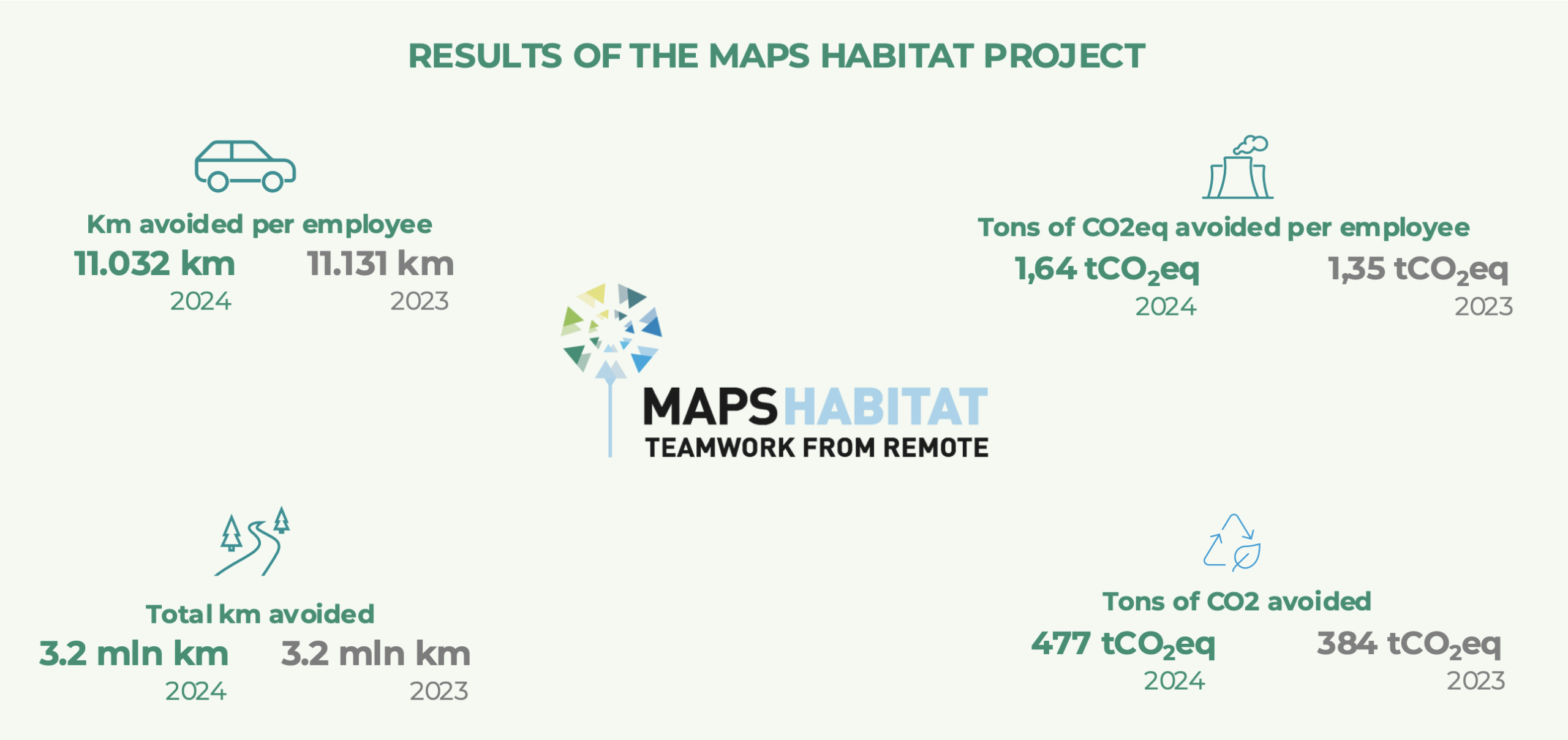 At Maps Group we have created Maps Habitat, a work organization model that allows each person to flexibly choose how to alternate remote work and on-site work, while maintaining one weekly in-person meeting with colleagues.