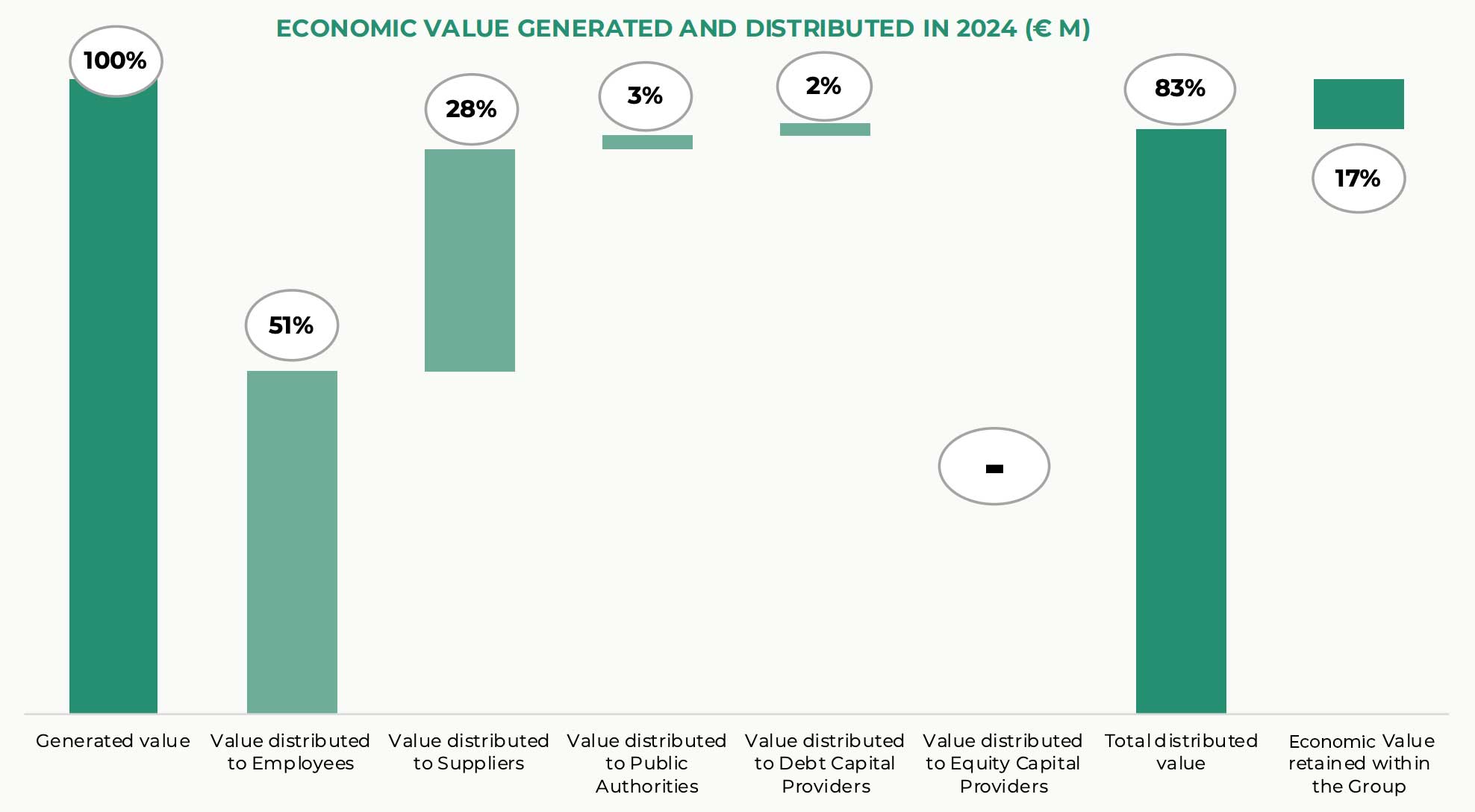 Welfare Index PMI is a tool that allows companies to assess and communicate their welfare level in a simple and intuitive manner. In doing so, corporate welfare becomes a competitive advantage, capable of fostering a continuous path of growth. This growth incentive is further confirmed by the fact that we managed to achieve the highest recognition of 5W in 2021, 2022 and 2024, following our attainment of the 4W rating – Welfare Leader in both 2019 and 2020.